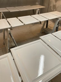 Waterborne lacquer style finish: Spray-applied in controlled stages for a smooth, durable, factory-grade surface on doors, drawers, and face frames.